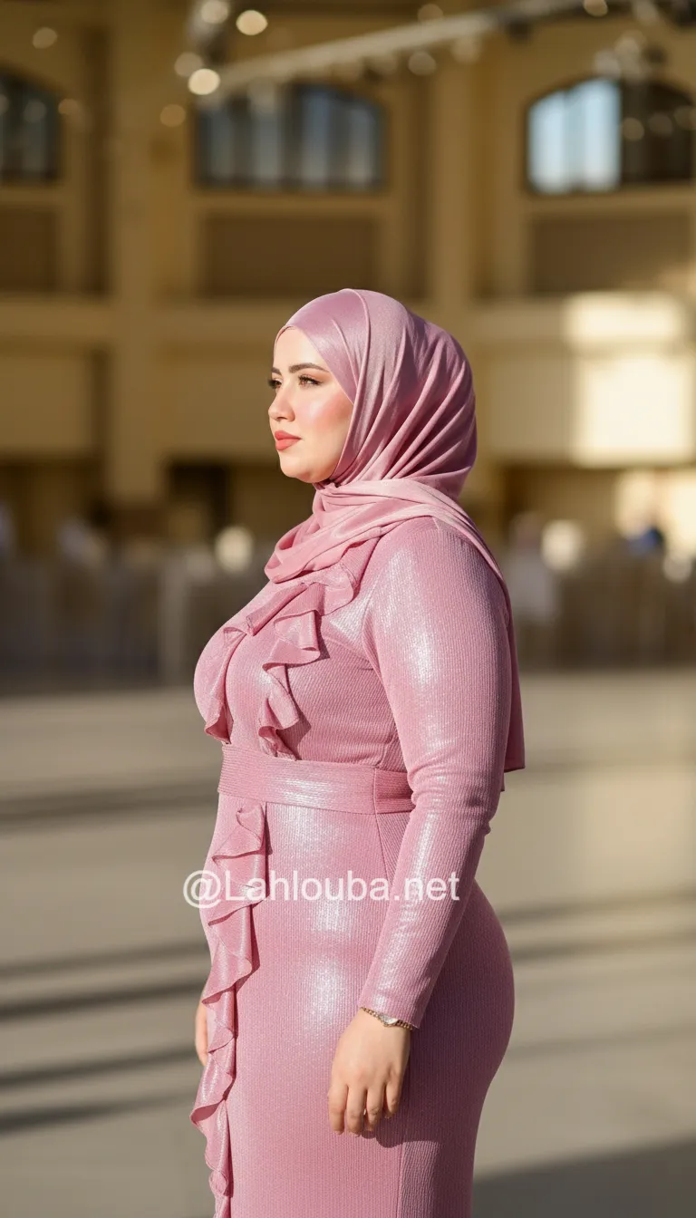 نقطة القوة: تفاصيل الكشكشة الضخمة على الأكتاف. هذه اللمسة لا تضيف فخامة فقط، بل تخلق توازناً بصرياً رائعاً مع الأرداف، مما يعزز من شكل “الساعة الرملية”.